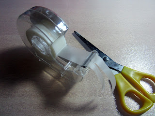 Para hacer las bandas, podemos ayudarnos con muchas cosas, no creáis que es a puro pulso. Yo utilizo celo, pero no un celo cualquiera sino de estos que son de color blanco, ya que los transparentes llevan mucho más adhesivo que éstos y se llevan la capa base de esmalte al quitar el celo. Pero también podéis usar por ejemplo pegatinas blancas rectangulares (de esas que usábamos para poner el nombre en los cuadernos), o cualquier cosa que podáis recortar y que no lleve mucho adhesivo.