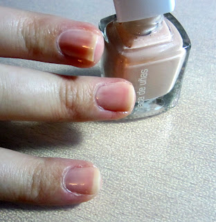 Comencemos a pintar. En este caso, yo doy dos capas del esmalte base por que como es muy clarito así coge más densidad en el color.