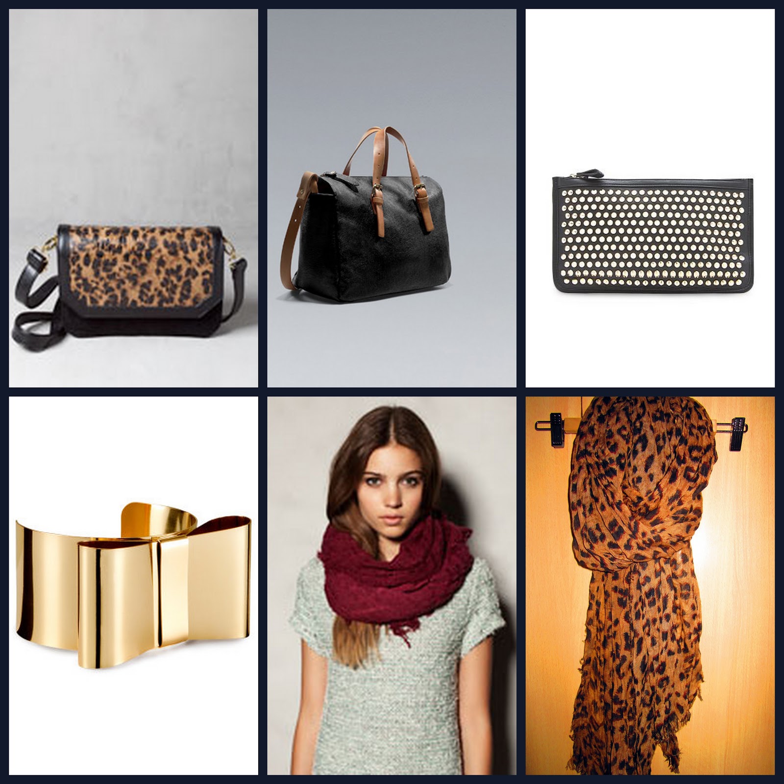 7. Accesorios como los bolsos y clutch, sobretodo con muchas tachuelas. Bufandas y fulares, como veis el de print leopardo ya es mio, y el granate no tardará. Y esta pulserita tan mona que me tiene loquita perdida desde que la vi en la web de H&M.