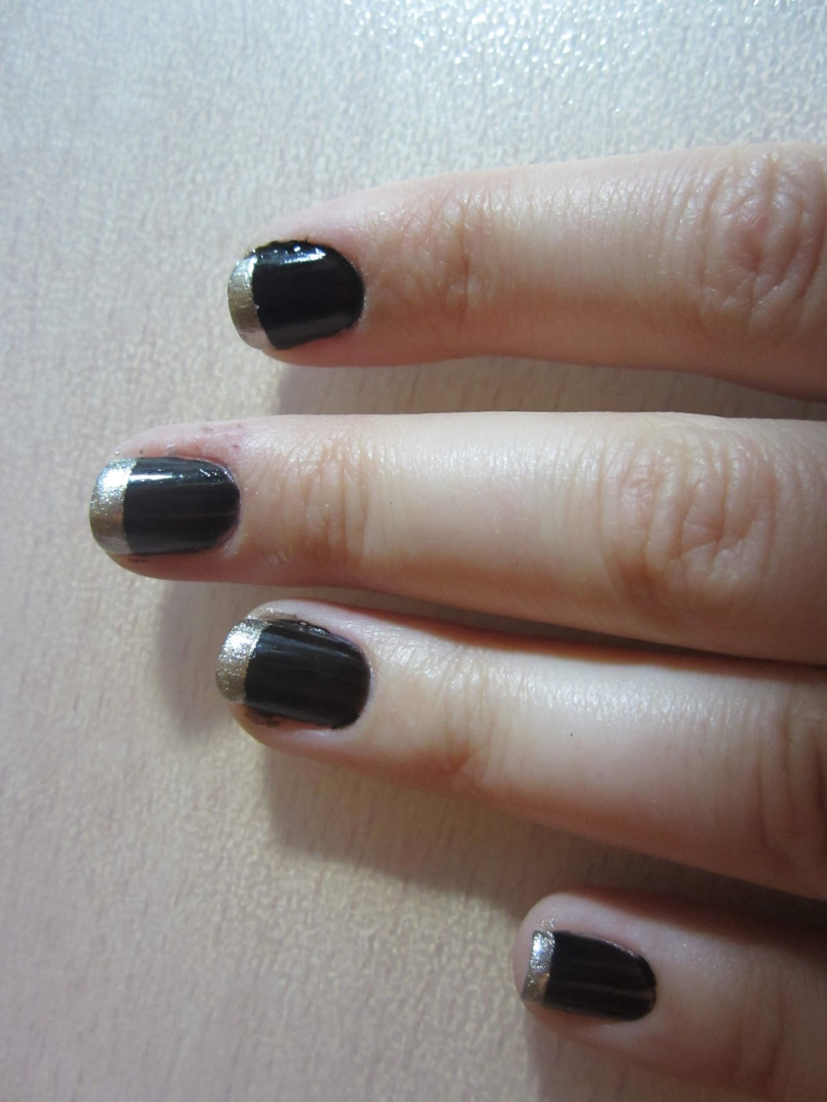 Se van acercando las Navidades, y nuestra mente entre otras cosas, va pensando en los looks que nos pondremos y en los complementos que nos acompañarán. Las uñas siempre han estado como en un segundo plano, pero ahora están entre los indispensables a la hora de formar un look. El Nail Art está pasando por un momento de expansión y éxito; hemos dejado atrás las uñas monocolor y la típica manicura francesa, para incluir combinaciones, dibujos, colores mate e incluso esmaltes magnéticos (pronto os hablaré de ellos). Y eso se nota también en este blog, ya que he adquirido una gran afición al Nail Art. Por ello hoy os dejo una manicura estilo francesa pero con colores diferentes, he usado el negro y para la punta el dorado. Es una combinación con la que acertarás para tus looks de noche y sobretodo para estas fiestas navideñas que se acercan. Veamos los pasos.
